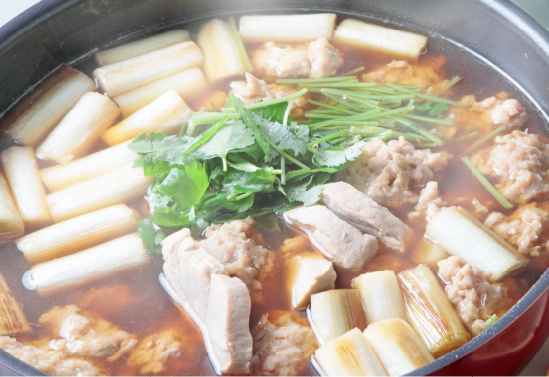 マグロのつみれダネを入れて煮立たせる時にアクが出てきます。丁寧に取り除くことで臭みのないスープに仕上がります。煮汁が濃いめであることもポイントです。