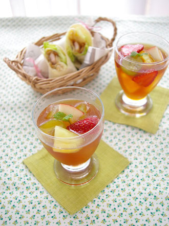 フルーツアイスティー&照り焼きチキンのトルティーヤロールサンド