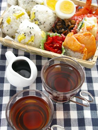 しょうがと黒蜜のホットティー&さつまいものおにぎり弁当