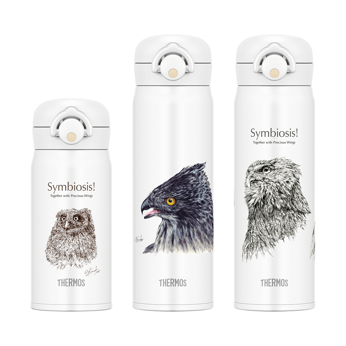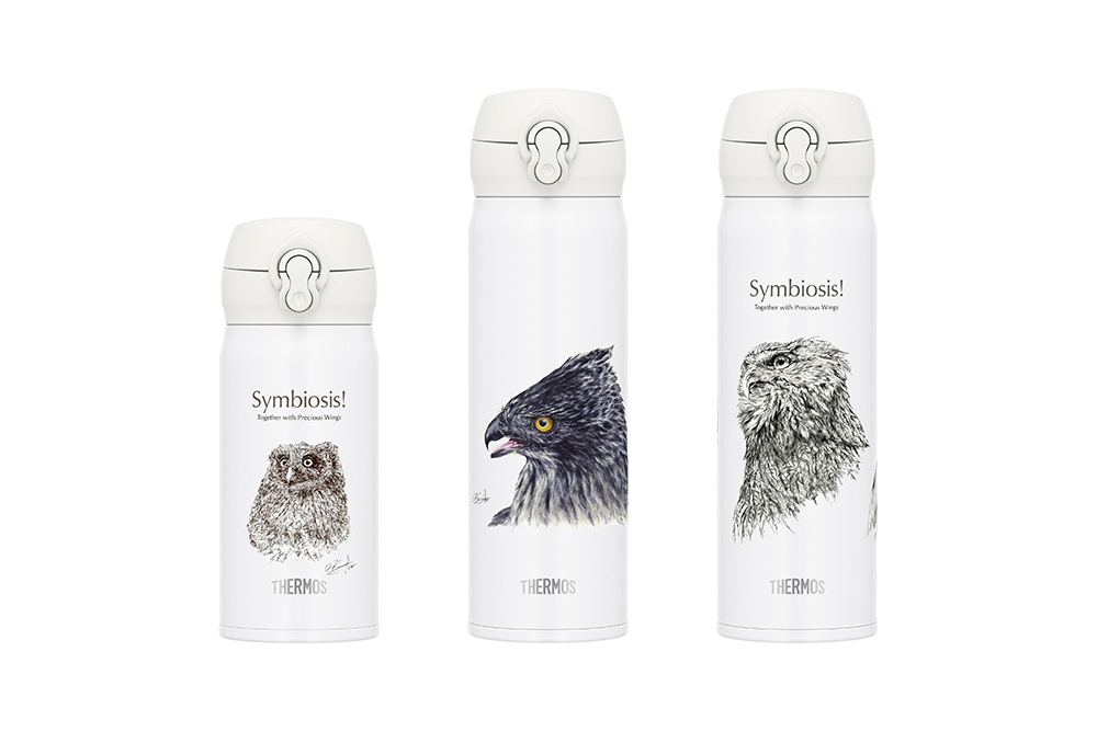 一部を寄付するオリジナルボトルの販売北海道での猛禽類保護活動の応援を目的に、「サーモス 真空断熱ケータイマグ(JNL-350IRBJ/500IRBJ)」を製造し、直営店であるサーモス スタイリングストア、およびサーモスオンラインショップにて発売しています。
