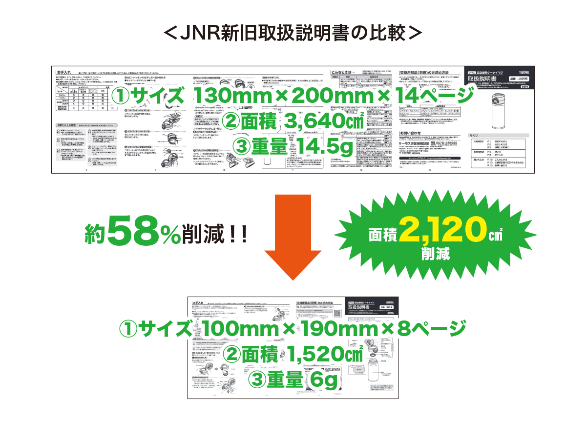 以下、一例として水筒(JNRシリーズ)の取扱説明書縮小についてご紹介します。
