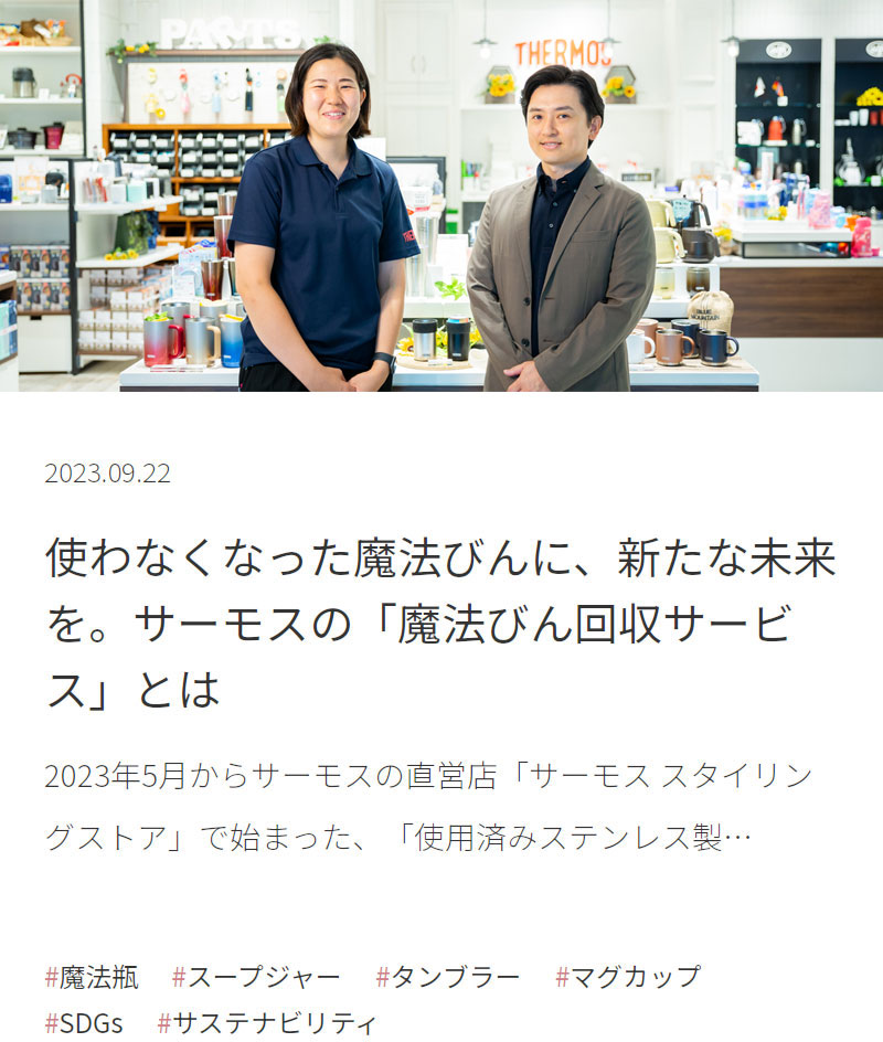 「使用済みステンレス製魔法びん」回収サービスを行う直営店を全21店舗に拡大しました。