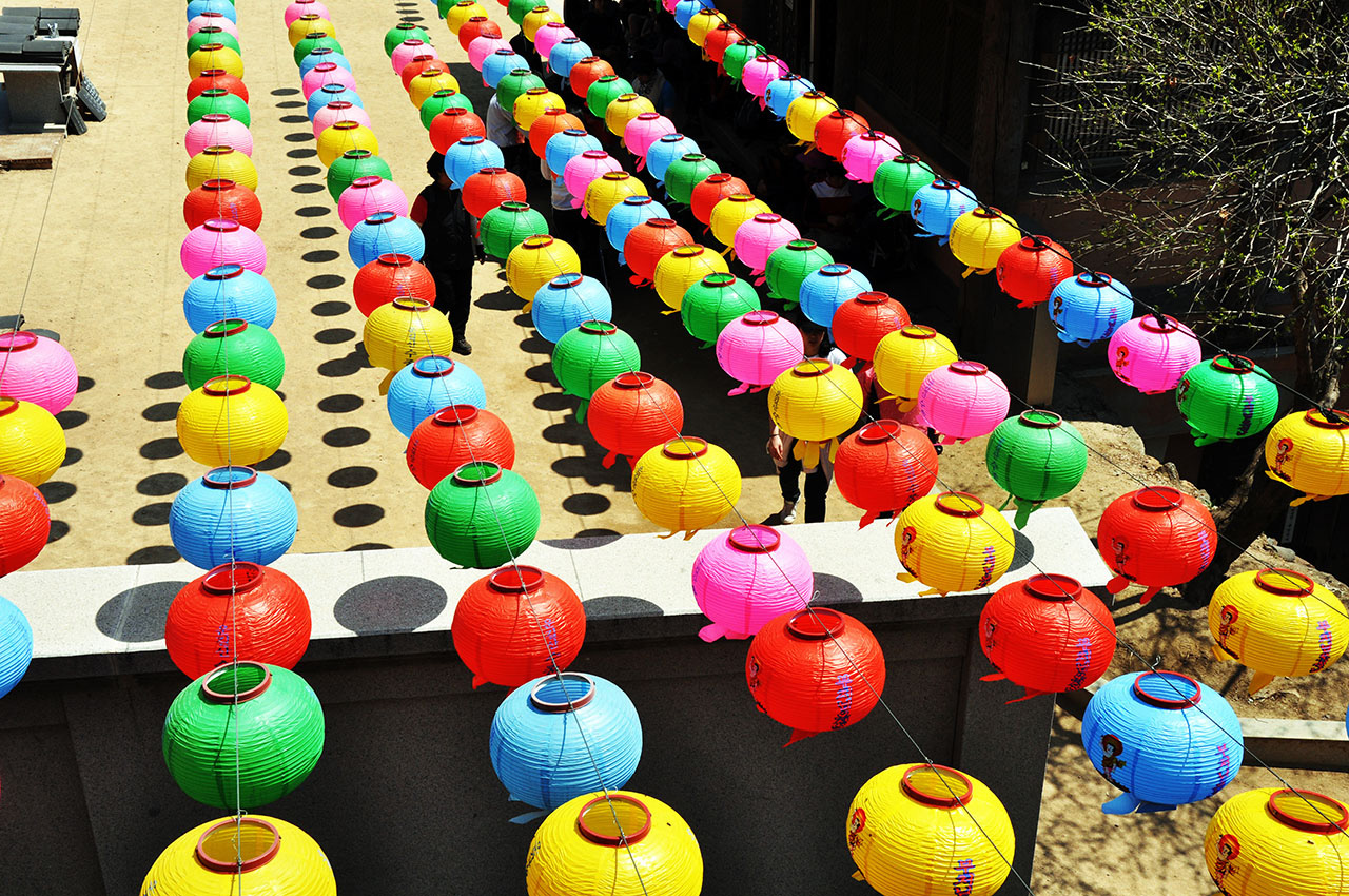 この日が近づくとソウル市内には色とりどりの提灯が飾られ、街中がほのぼのとした灯りに包まれるのです。祭りの夜には提灯を携えた人々が練り歩く、「燃灯行列」が見られます。