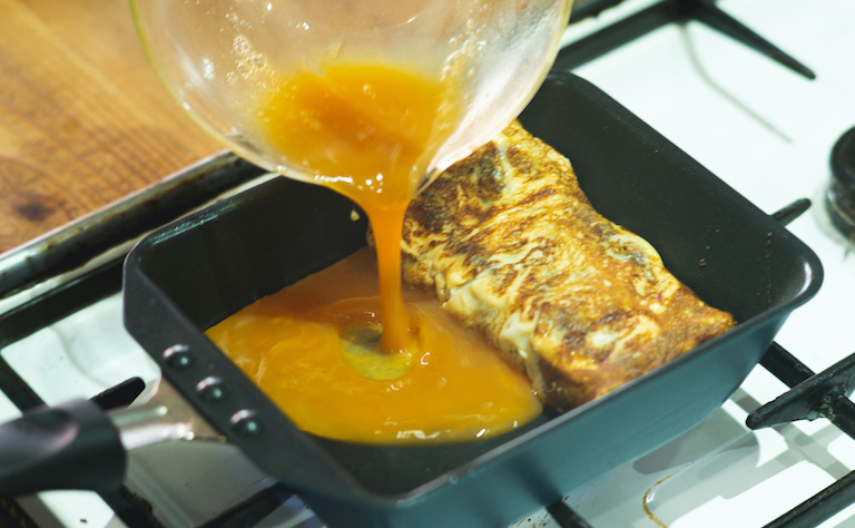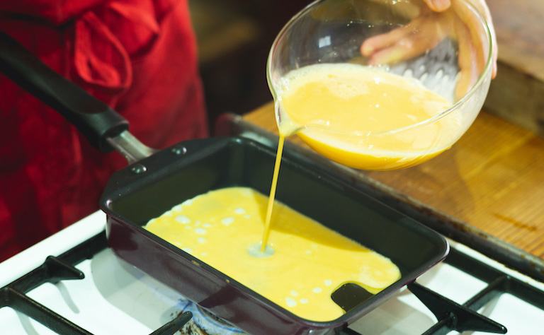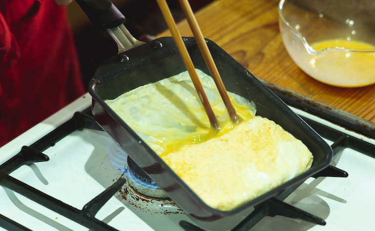 上手に巻くのは、練習あるのみ! とのことですが、玉子焼きを焼く道具についてもぜひアドバイスをいただきたいところ。玉子焼き専用の調理器を持っていない場合、丸型のフライパンで玉子焼きを作ることもありますが、山田さんと山口さんによると、玉子焼き専用の調理器を持っておくことが上手に焼ける近道になるそう。