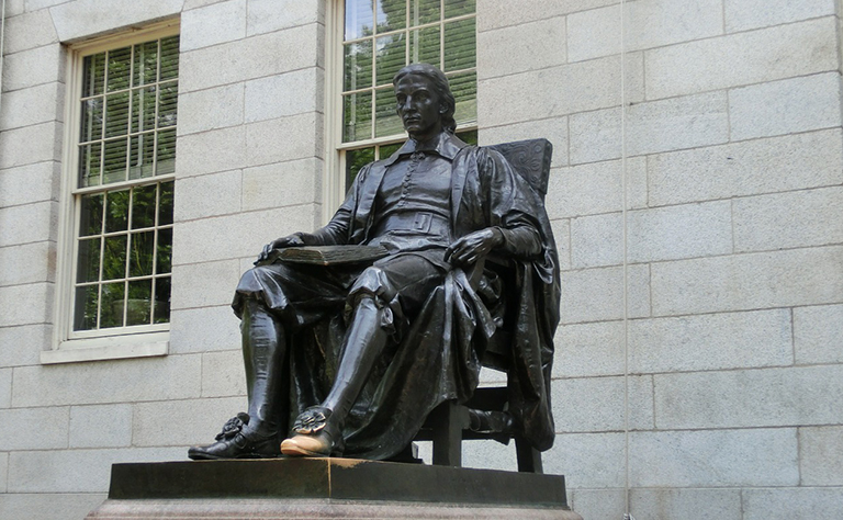 キャンパス内には、創設者ジョン・ハーバード氏の銅像があります。