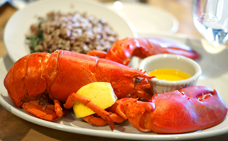 なかでも代表的なのが真っ赤に茹でたロブスター。溶かしバターをつけて、手で豪快にいただきます。