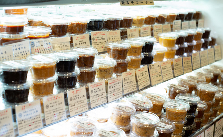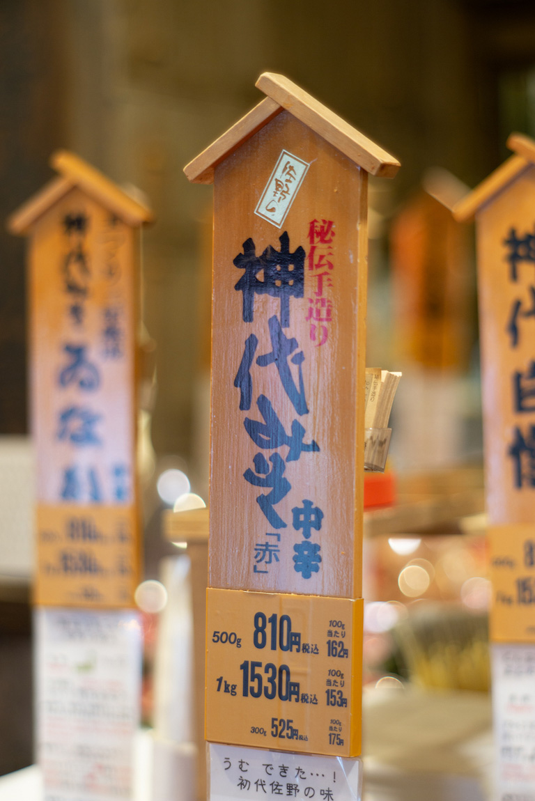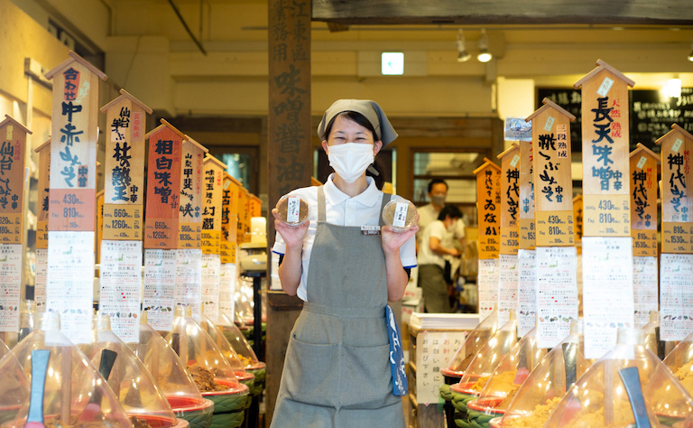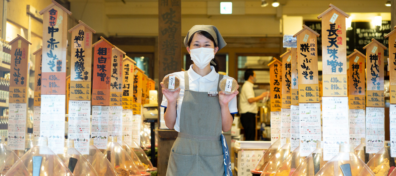 『噌ムリエ』は、佐野みそが独自に設けている社内資格。お店では、味噌についてのさまざまな知識を身につけたプロによるアドバイスを行っています。味噌についてわからないことは何でも聞いてくださいね!