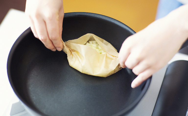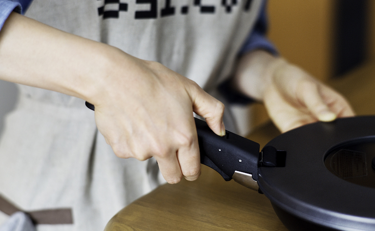 「フライパンで揚げ物をするときに心配なのが、取っ手を引っ掛けてしまうこと。だけどこのフライパンなら、ワンタッチで簡単に取っ手の取り外しができて安心です。そのままオーブンにも使えるし、それこそ食卓にそのまま並べても素敵なので、料理がいっそう楽しくなりそうです」