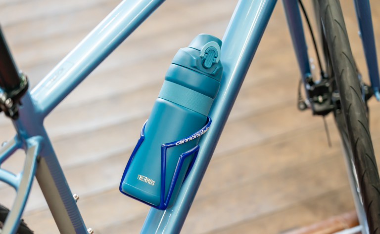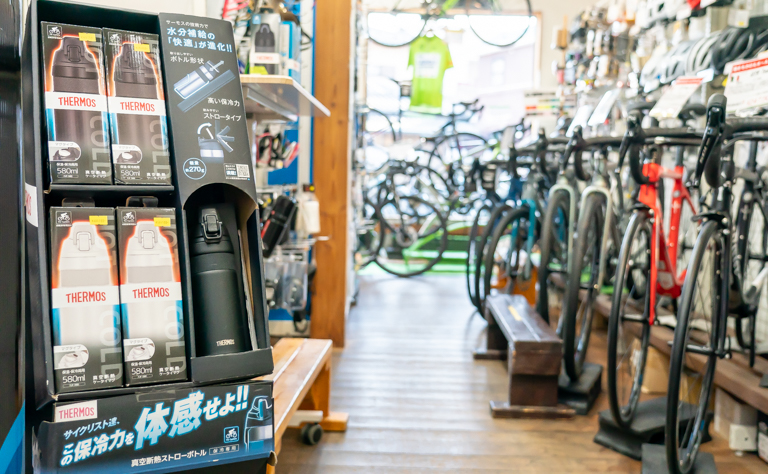 「自転車専用のサイクルボトルがおすすめです。ペットボトルで代用する人もいますが、夏場はすぐぬるくなってしまうし、キャップが取り外しづらいのが難点。車体に付けるボトルゲージはサイクルボトルのサイズになっているので、ペットボトルだとサイズが合わず段差などで外れてしまうケースも。バイク専用のボトルゲージとサイクルボトルを使用しましょう」