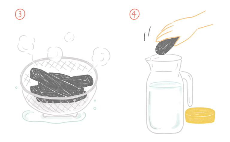 「備長炭はピッチャーに入れたままで問題ありません。また、不純物を吸着した備長炭は煮沸することで再度リセットすることができます。2〜3回ほど使用したら、さきほどの手順1からお手入れしてください。