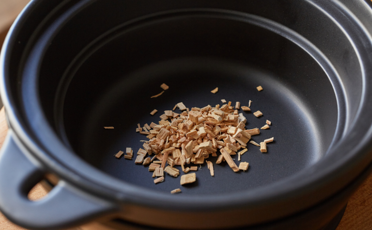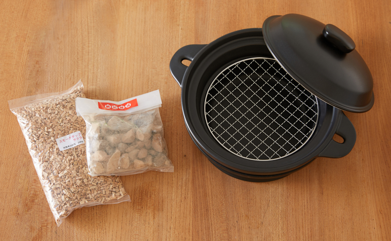 「自宅で燻製を作る時に必要なのは、燻製器と燻製チップか燻製ウッド、あとは食材があればOK。チップには様々な種類がありますが、 初心者には万能な“さくら(チェリー)”があればいいかと思います。食材ごとに燻製チップを使い分けることもありますが、まずは細かいことにこだわらず、手軽に燻製を楽しむことから始めましょう」