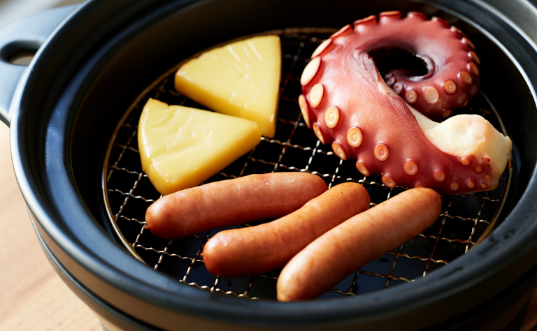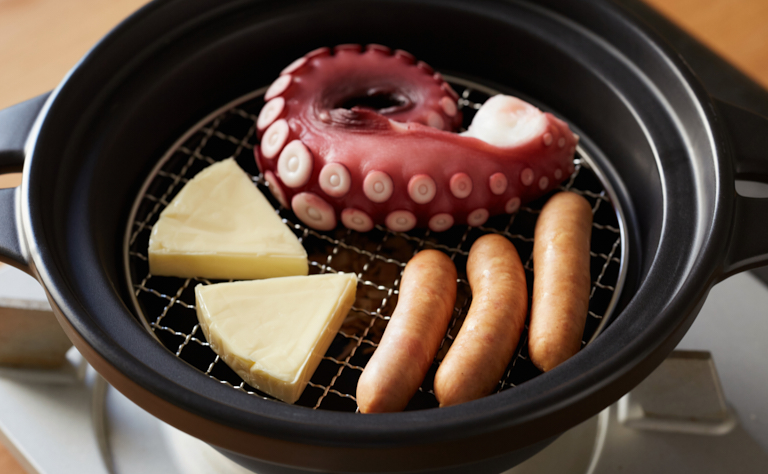 「ご自宅では煙を多く出し過ぎないように、換気をして楽しんでください。イージースモーカーがあれば簡単に燻製が楽しめるので、ちょっとしたおつまみや料理のアレンジに燻製を取り入れてみたら、料理の幅が広がりますよ」