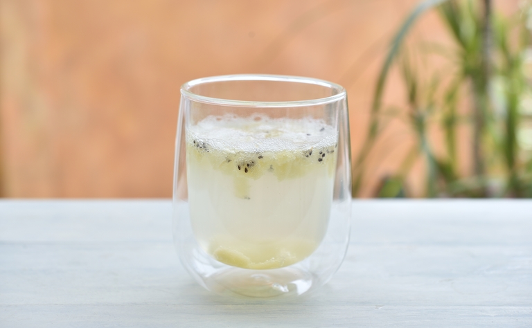 グラスにはちみつキウイ大さじ1~2(漬け込んだキウイも含む)を入れ、冷やした炭酸水(無糖)約100mlを注いでまぜる。好みでレモンやライムを添えると、おしゃれな雰囲気に。