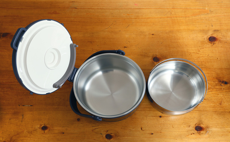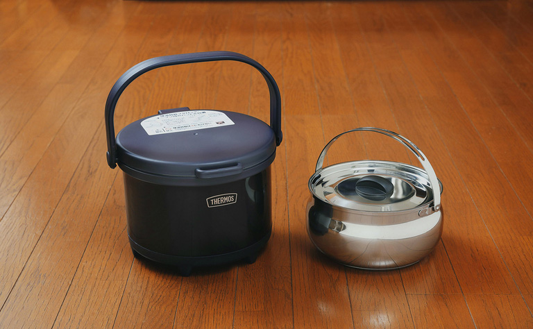 熱源が限られているアウトドアで大活躍するのが「真空保温調理器シャトルシェフ(ROP-001)」。加熱は短時間のみで、あとは火を使わずに保温して調理できるという省エネ調理器具です。
