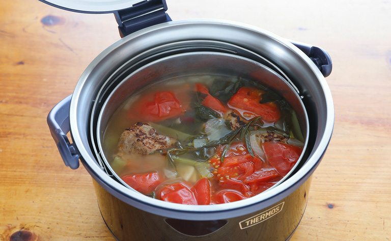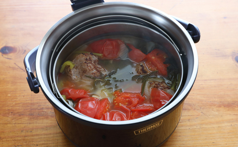 調理鍋を火にかけて10~15分、沸騰させたら、火からおろして調理鍋フタをして、保温容器に入れて30分~1時間程度保温します。「熱」を閉じ込めて調理する保温調理では、グツグツと煮込まなくても食材がやわらかくなって味もしっかり染み込みます。