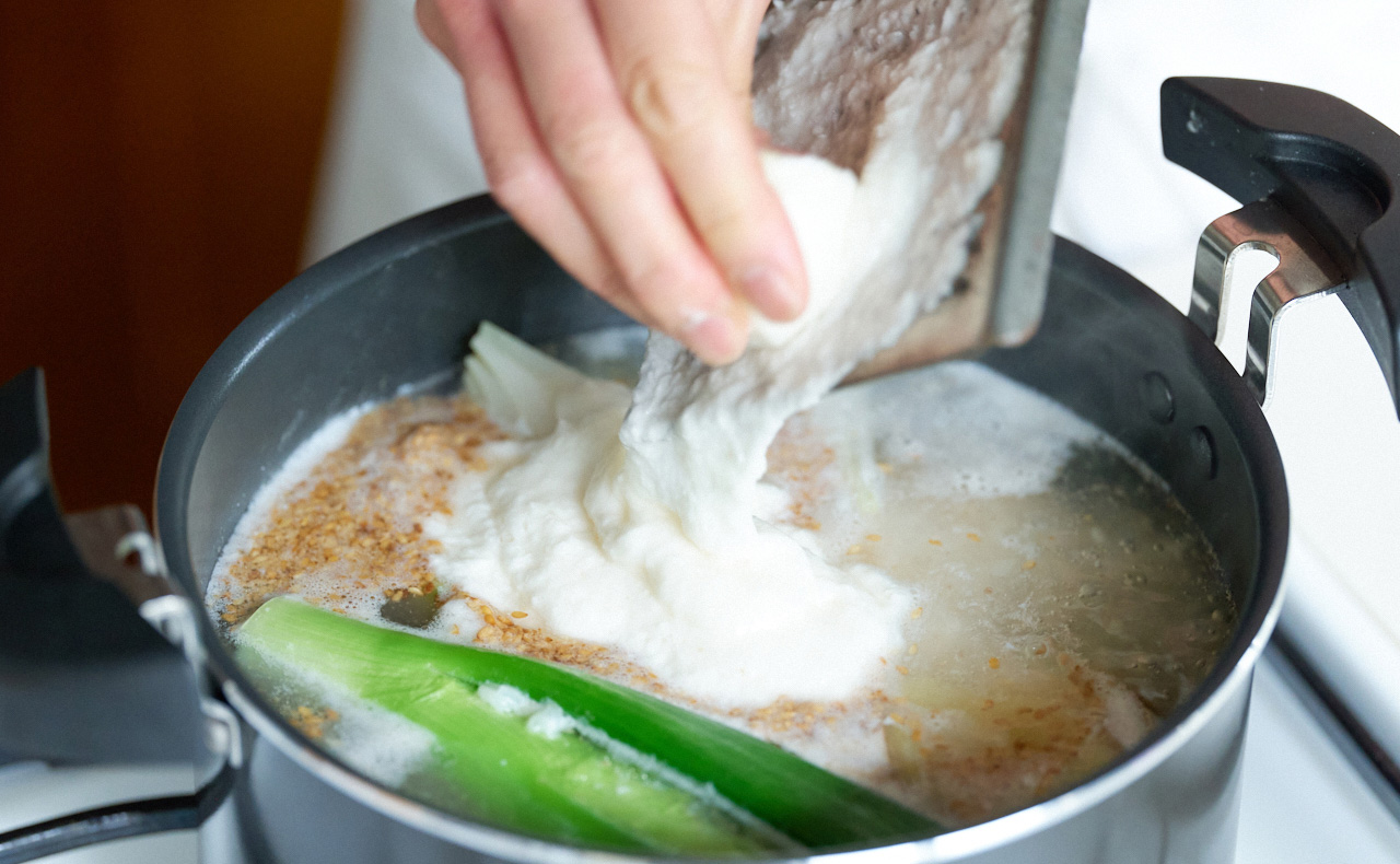 長芋や山芋は滋養強壮に優れた食材で、スーパーで手に入る野菜の中では最も生薬に近いと言われるほど。体力が落ちてきたな……というときに温かい汁物にプラスするのがおすすめです。胡麻は、内臓を潤して不調を整えてくれる良質な油分を含んでいます。