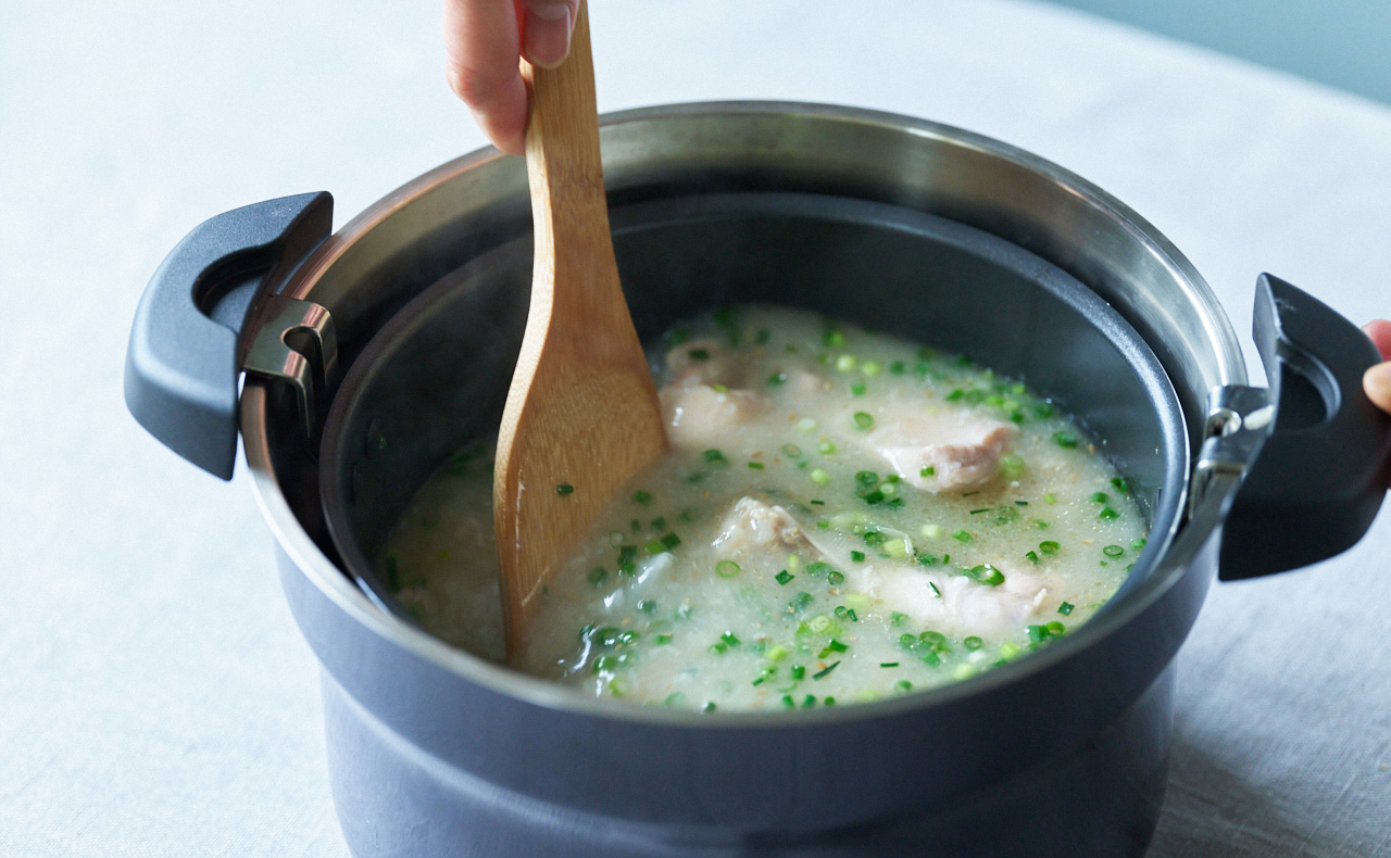 実は今回初めてシャトルシェフを使ったのですが、鶏肉がとても柔らかくしっとりと仕上がって驚きました。火加減を気にする必要もないし、煮込み時間が長めな参鶏湯との相性もよいですね。