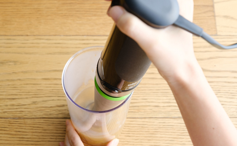 【4】3をハンドブレンダーでなめらかになるまで撹拌する(約1分)。