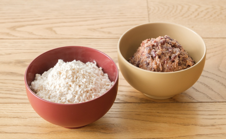 発酵させることで米こうじの粒が大きく膨らむので、最初に砕いておくとよりあんこらしい仕上がりになります。砕いても、米こうじの酵素の働きは変わりません。