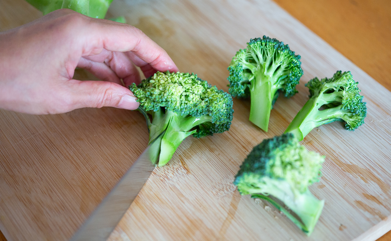 【1】 ブロッコリーとカリフラワーは小房に切り分ける。大きい房のものは半分に切る。