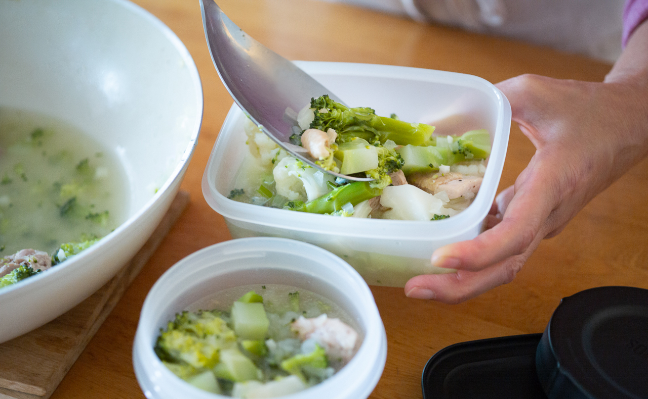 普段からスープを作り置きして楽しんでいるという石澤さん。今回教えていただいた「ブロッコリーとカリフラワーのスープ」は、冷蔵で4〜5日、冷凍で2週間程度の保存ができるそう。