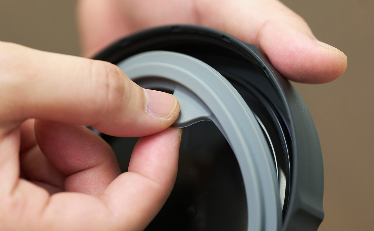 「サーモスのランチジャーにも蒸気弁が付いた製品はあるのですが、本体と一体にはなっていません。今回追求したのはパーツとフタの一体化。というのも、私もランチジャーを使っているんですけど、洗っている時に排水溝に流しちゃうことがあって(苦笑)。紛失防止のためにも、パッキン一体型の蒸気弁は譲れませんでした」