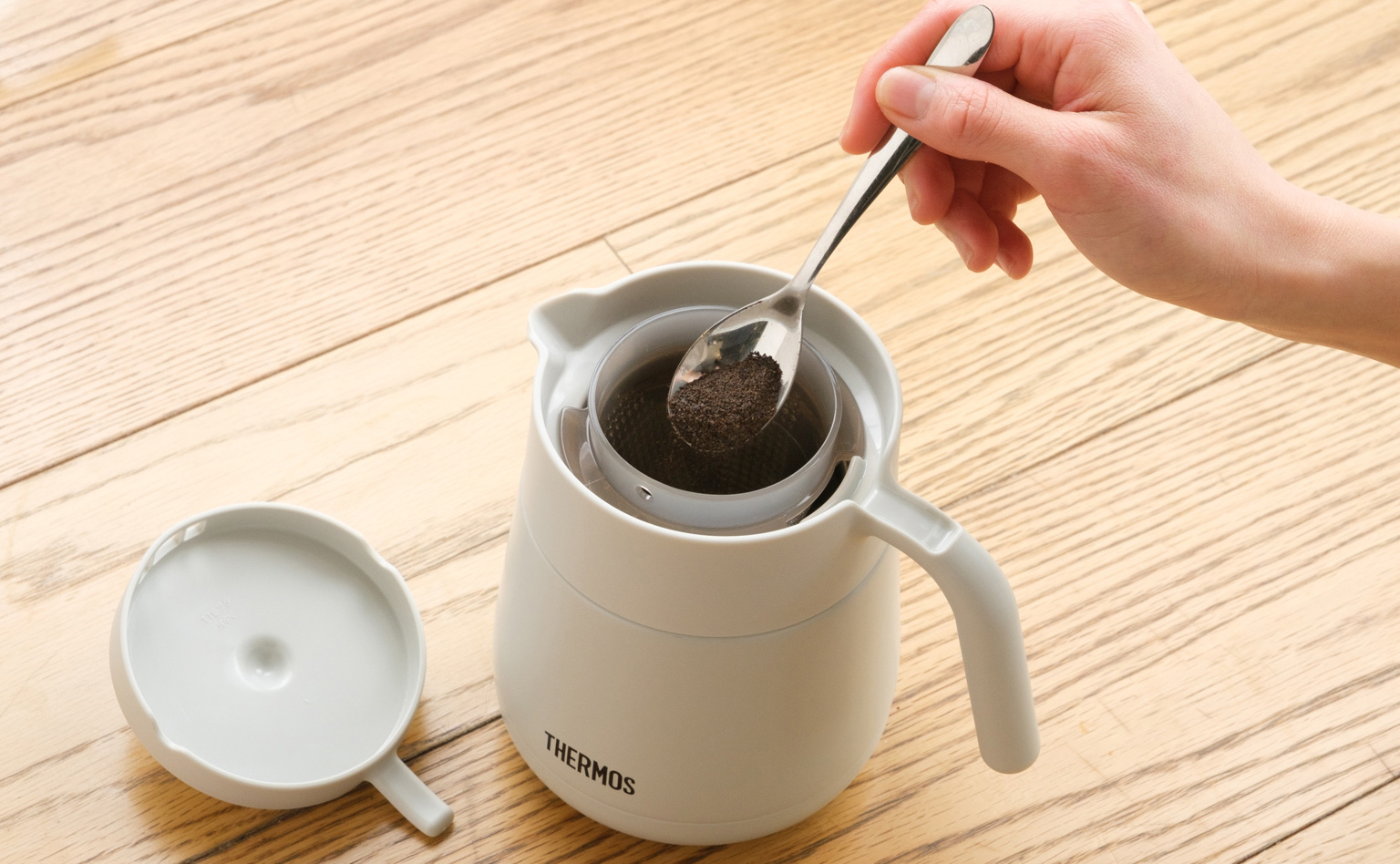 お皿に並べたら、サーモスの真空断熱ティーポットでお茶の準備をします。