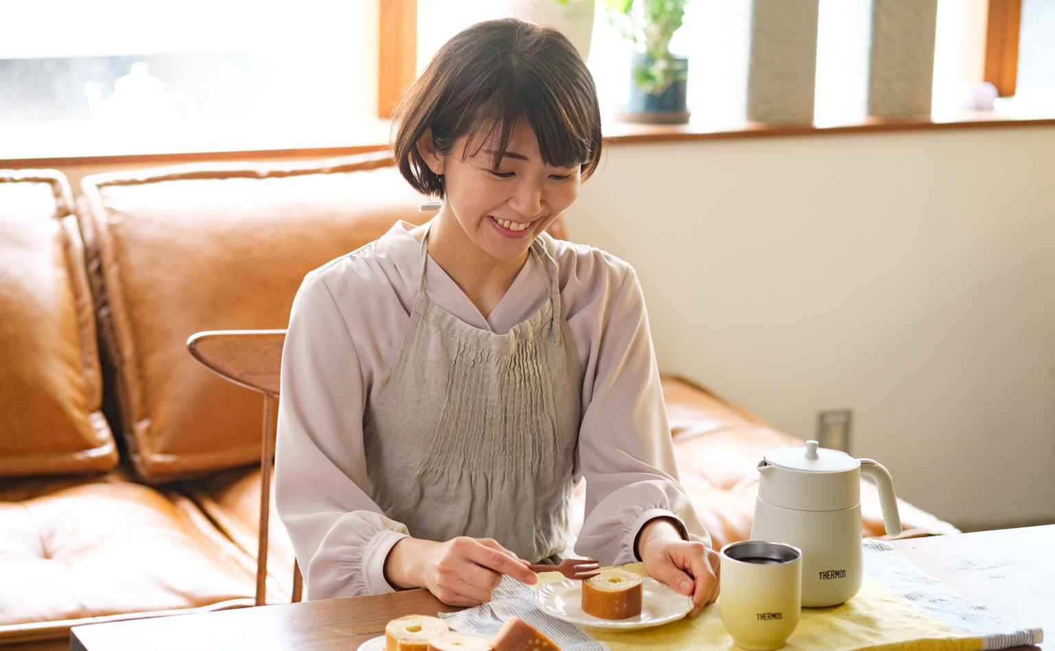魔法びん 構造のカップにお茶を注ぎ、午後のティータイム。中村さん、お味はいかがですか?