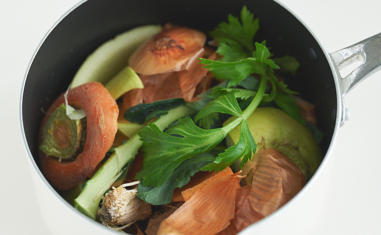 野菜を調理する時に捨ててしまいがちな、皮やヘタなどの野菜くず。実はこれらをじっくり煮込むと、やさしい味わいが楽しめる野菜の出汁「ベジブロス」になります。今回はやさい料理家・國行志保さんに、ベジブロスをふんだんに使ったレシピを教えてもらいました。