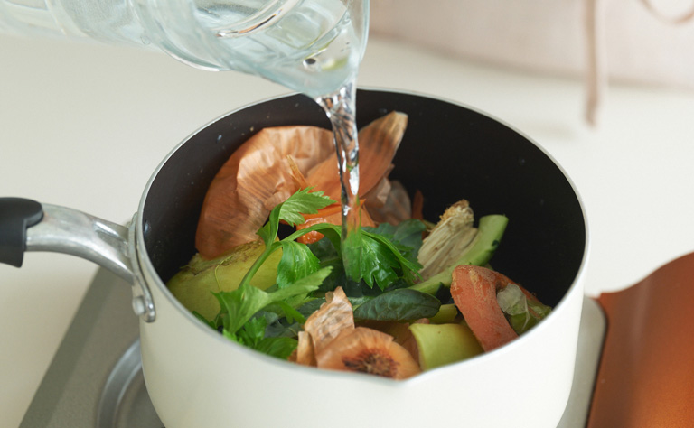 野菜を調理する時に必ず出てしまう、切れ端や皮、ヘタなどの野菜くず。しかし、すぐに生ごみとして捨ててしまうのはもったいない! 実は、野菜くずを集めて煮込むだけで、野菜のうま味が存分に味わえて健康にも良い出汁「ベジブロス」を作ることができるんです。