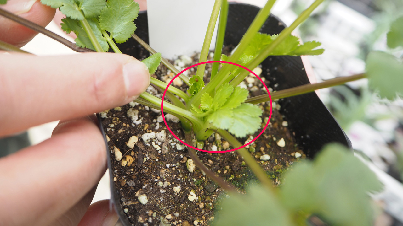 また、パクチーは内側から外側に向かって生えていくため、一番内側にある新芽を摘まないようにして、外側から収穫していくこともポイントです。