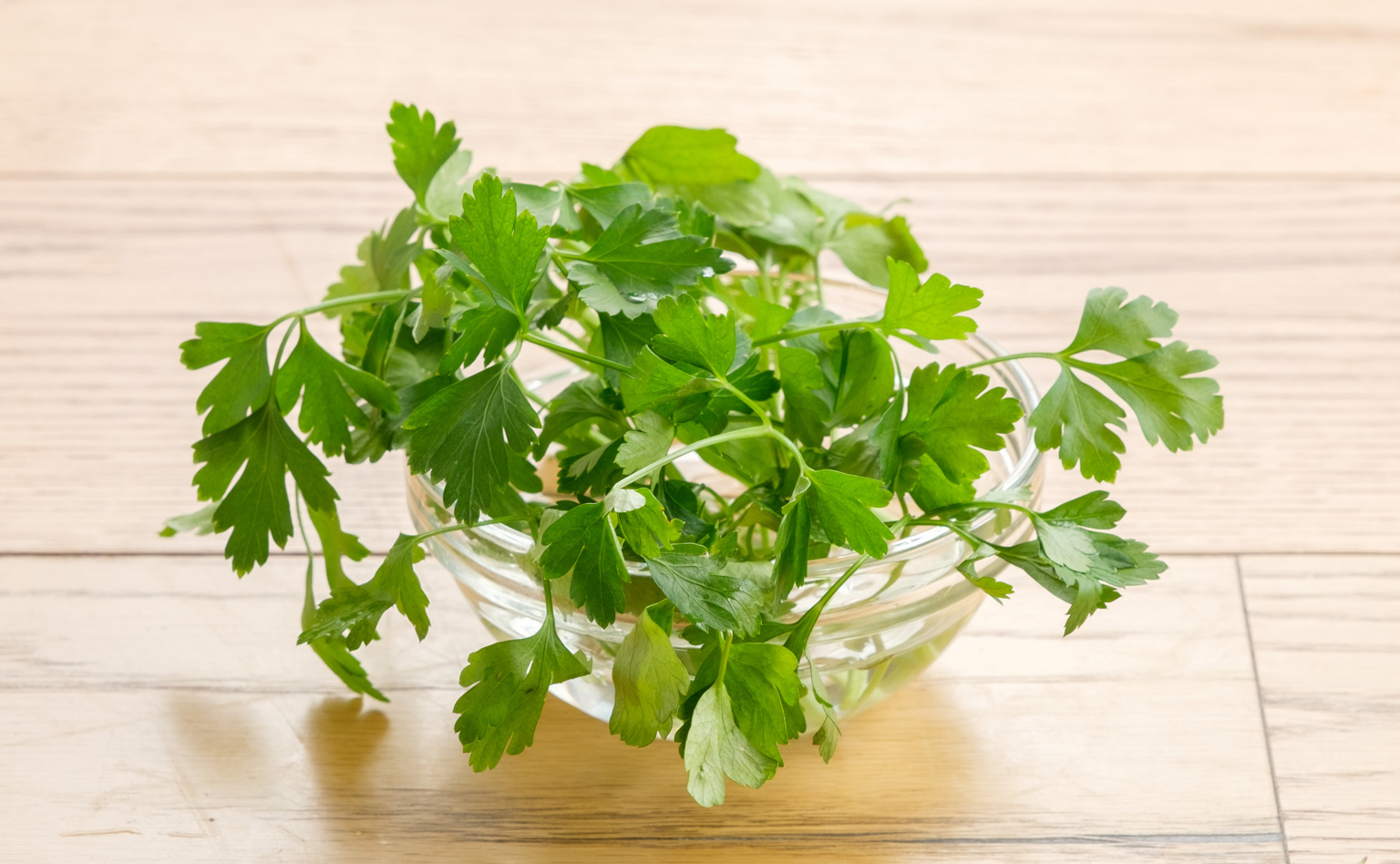 イタリアンパセリは飾り付けに使われることが多いですが、ビタミンやミネラルなどが豊富に含まれているんです。どんな料理にも合うので、刻んで料理に散らすだけでもOK。爽やかな香りで食欲を増進してくれます。