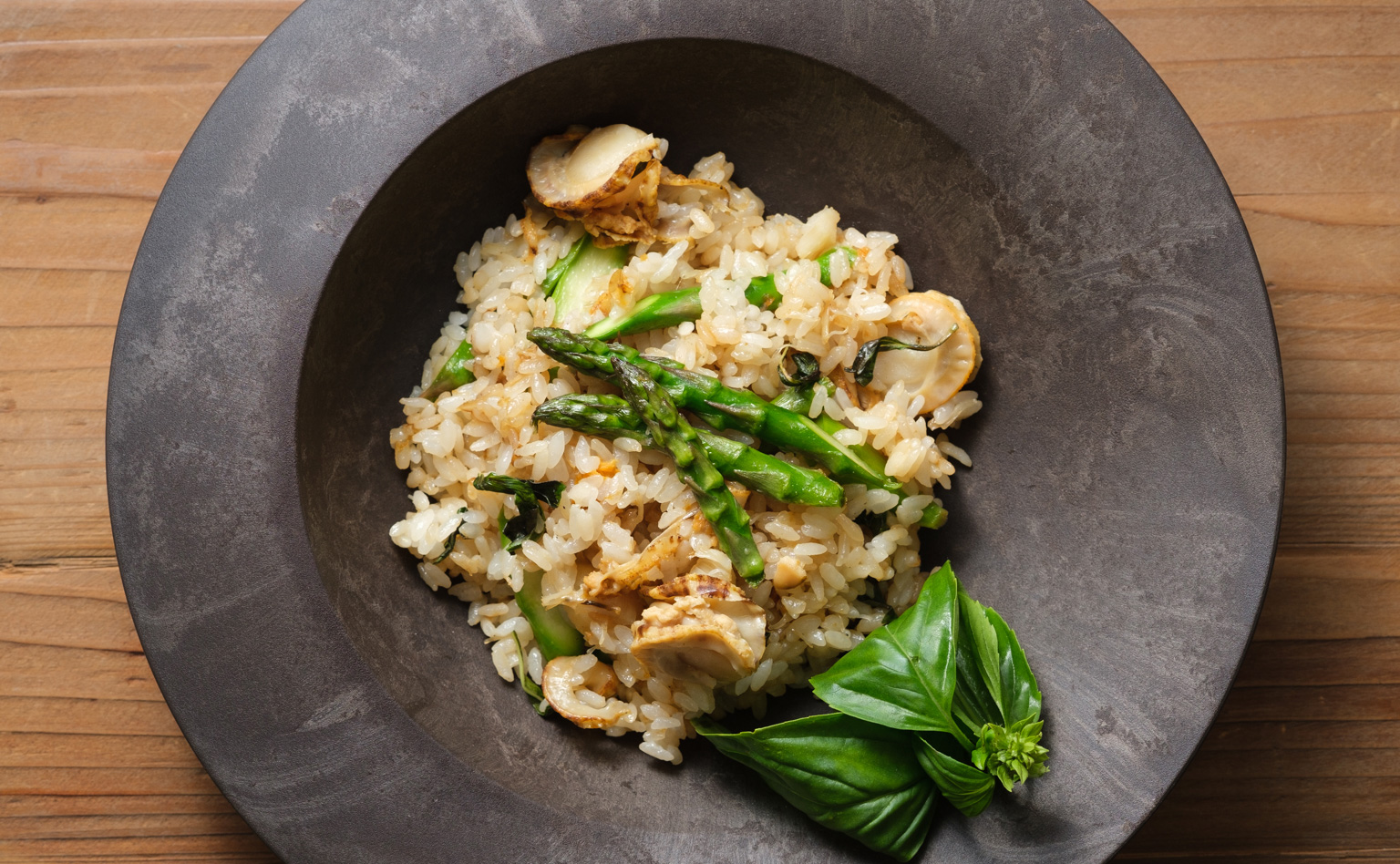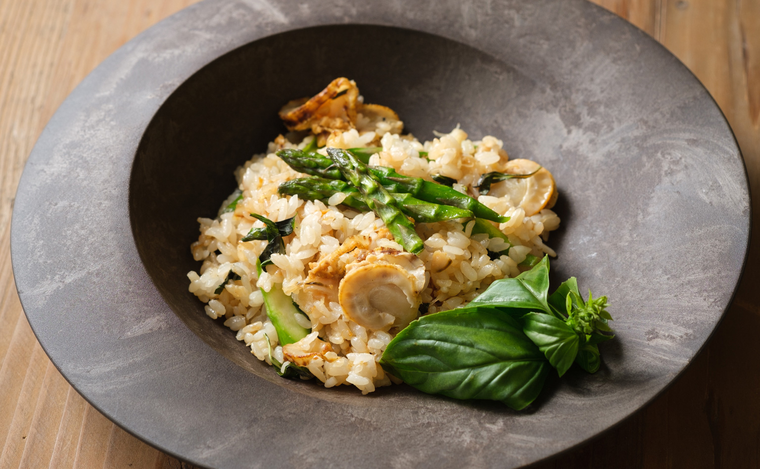 そう言ってもらえるとすごく嬉しいです!「ホタテとアスパラのガリバタピラフ」は、にんにく+バターでちょっとした背徳感を楽しむレシピにしました(笑)。バジルは海鮮などの臭みを取ってくれる効果があるので、すっきりとした後味に仕上がっています。