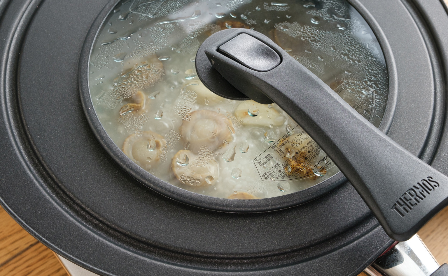 バジルは加熱しすぎると香りが飛び、黒く変色してしまうので、火を止めて余熱で調理します。