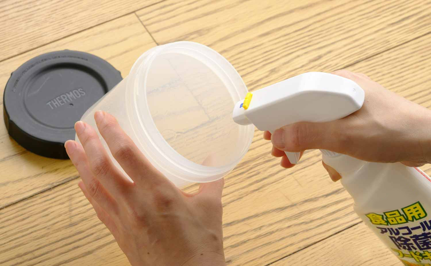 ・保存容器は食品用アルコールスプレーで消毒しておく。