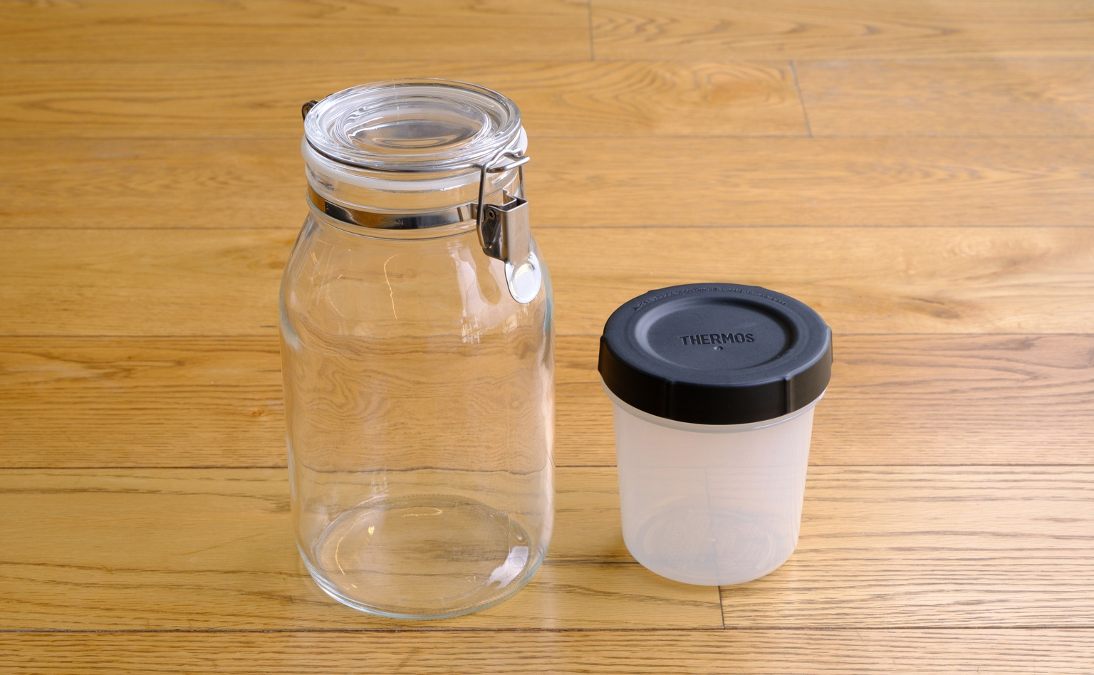 ガラス瓶が定番ですが、保存容器でも作れます。梅は酸が強いので、腐食しやすいアルミなどの金属製のものは避けるようにしましょう。少量ならガラス瓶よりもプラスチック製の容器の方が取り扱いもラクですね。