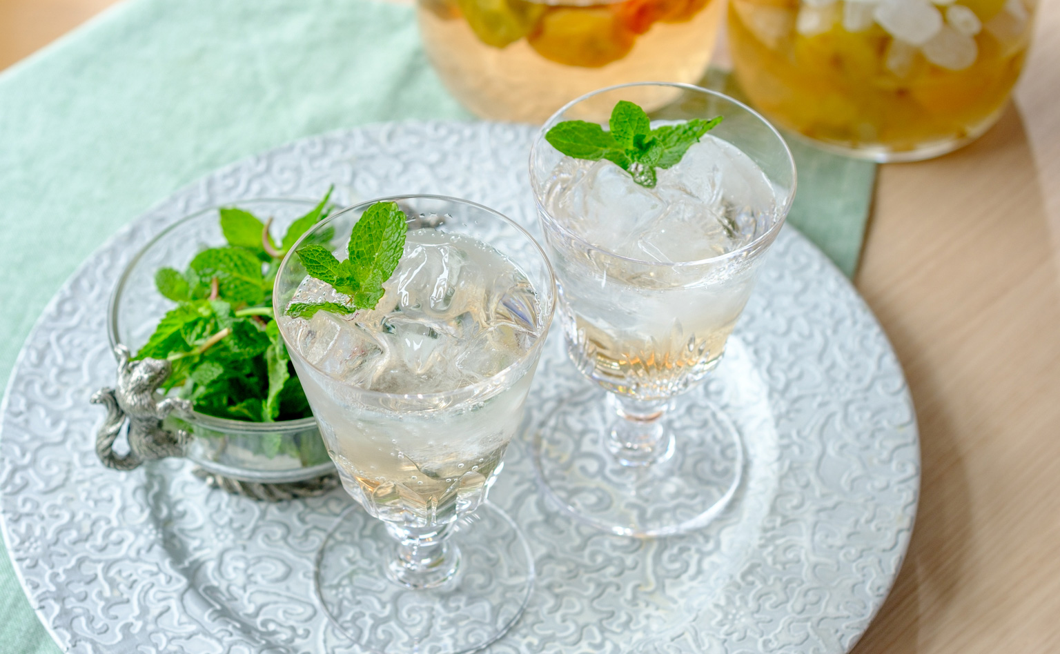 この日は炭酸水で割っていただきました。グラスに氷と、梅シロップを大さじ2程度入れて、100~150ml程度の炭酸水を注ぎます。お好みでミントを添えて。