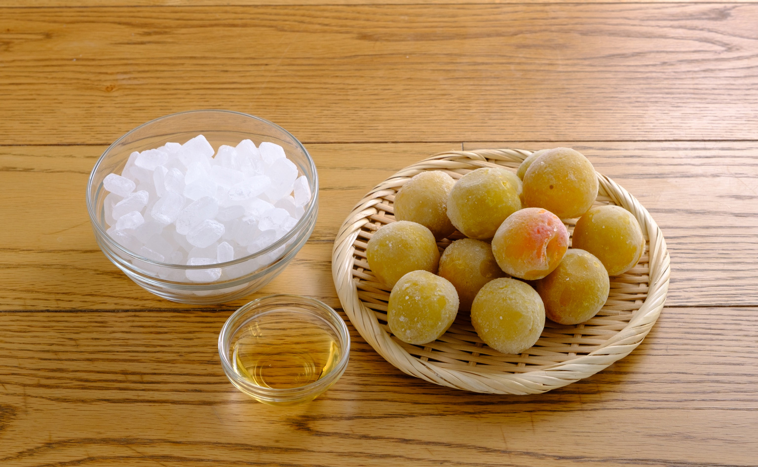 梅は南高梅だとリッチな口当たりに、青梅だとスッキリした味になります。砂糖は氷砂糖がおすすめですが、きび砂糖や三温糖でも。こうした茶色の砂糖を使うとシロップが琥珀色になります。お酢を加えると殺菌効果で腐りにくくなり、さらに梅のエキスも早く出るようになります。お酢はツンとこないまろやかなものがいいですね。りんご酢以外にも、白バルサミコ酢などお好みで選んでください。