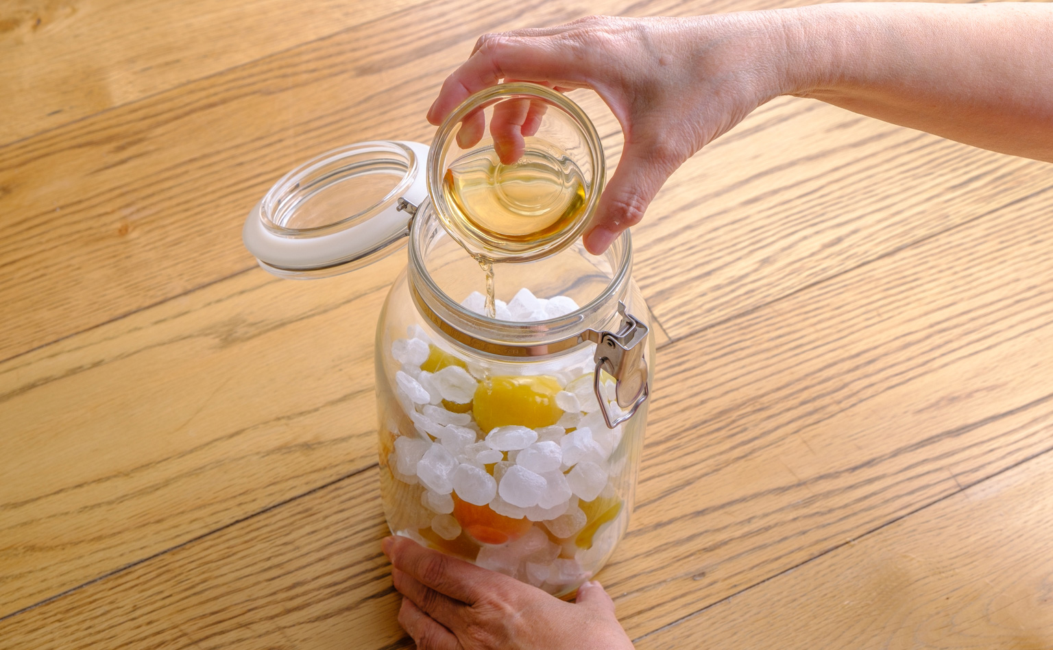 ホワイトリカーは焼酎の一種で、果実酒によく使われます。梅自体も消毒することでカビや腐敗を防げますよ。ない場合は食品に直接使えるアルコールスプレーでもかまいません。