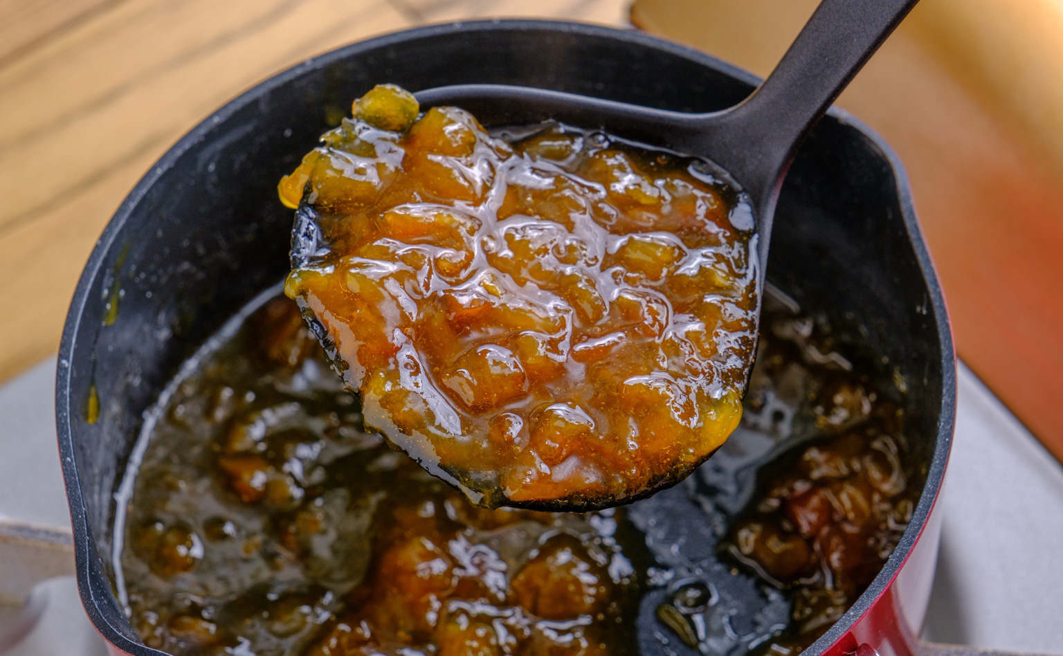 冷めるとやや固くなります。とろりとしてきたら「少しやわらかいかな」と思うくらいで火を止めると、ちょうど良い仕上がりになります。