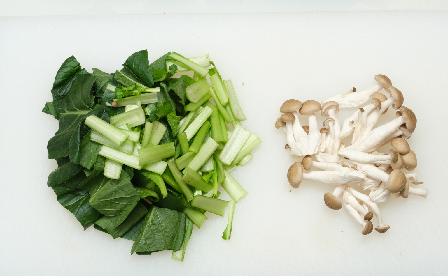 ・アジは皮ごと一口大の大きさに切る。小松菜は3〜4cm幅のざく切りに、しめじは石づきを切り落とし、ほぐす。