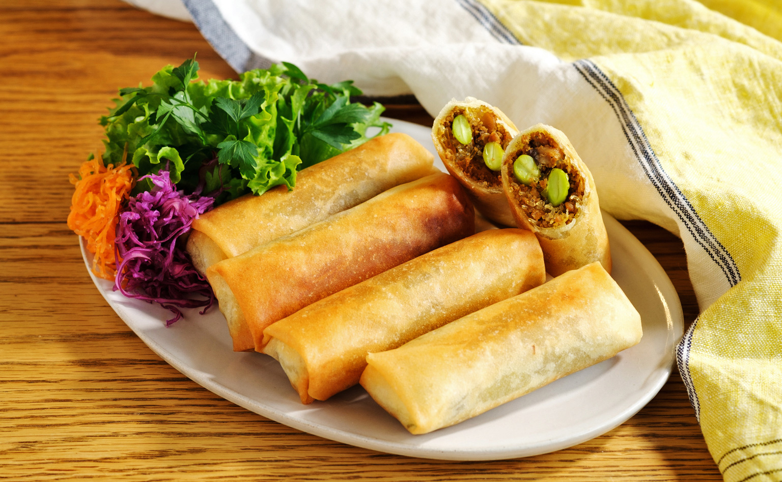 春巻きは皮を二重に包むことでパリパリッと軽い口当たりに。中身のカレーそぼろはジューシーで、なおかつ春雨入りなのでボリューム満点! 辛さは控えめなのでお子さまでもおいしく食べられます。お弁当はもちろん、大人向けのお酒のおつまみにも合いそうです!