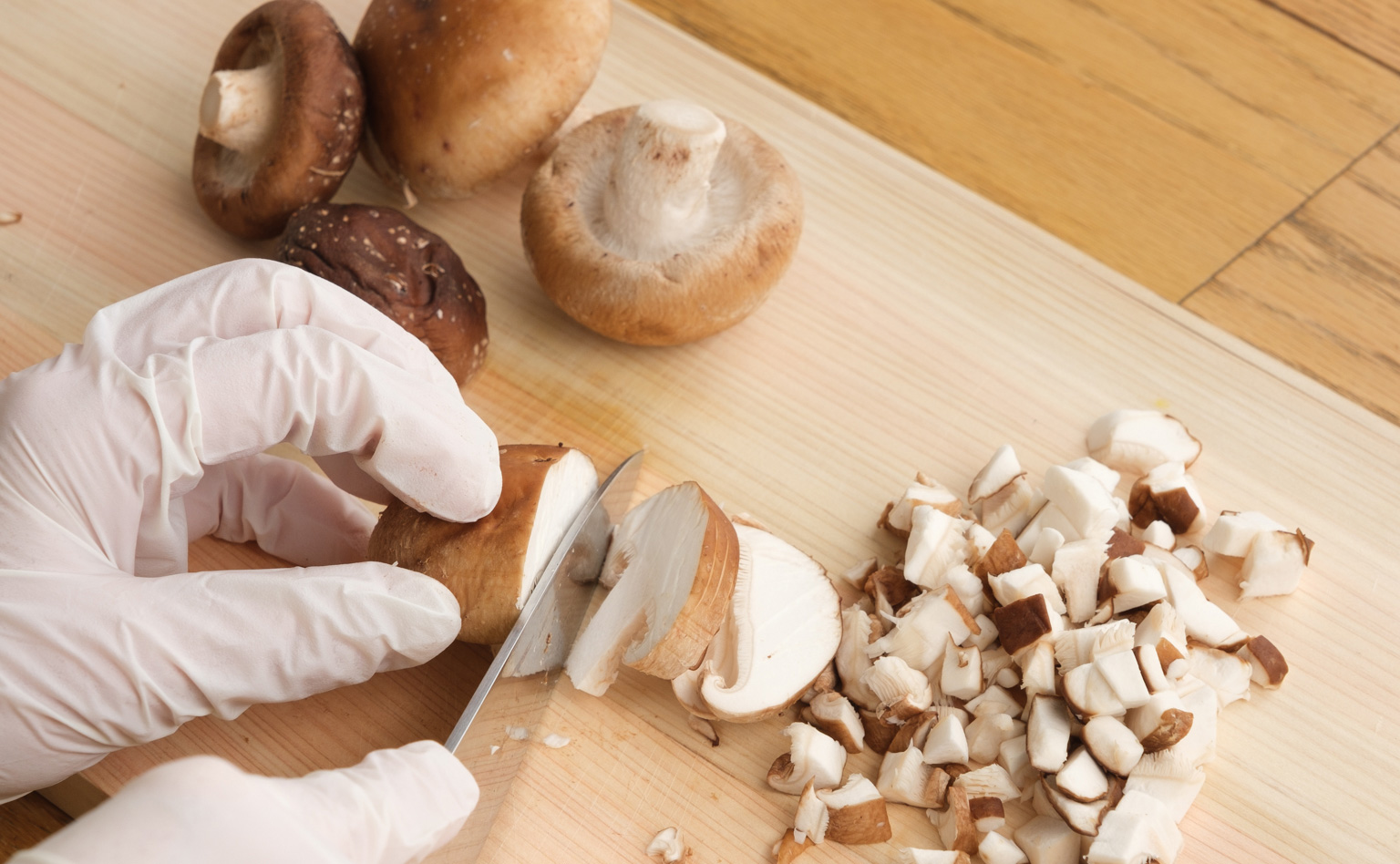 ・椎茸は石づきを取り、8mm角ほどに切る。