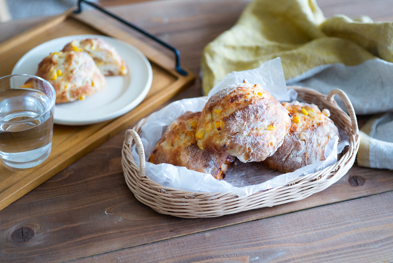 食感も味わいも秀逸な「とうもろこしとクミンの切りっぱなしパン」。手軽に作れるので、パン作り初心者にもぴったり。パンを休ませている間はほかの家事などをしつつ、ぜひ気軽にチャレンジを!