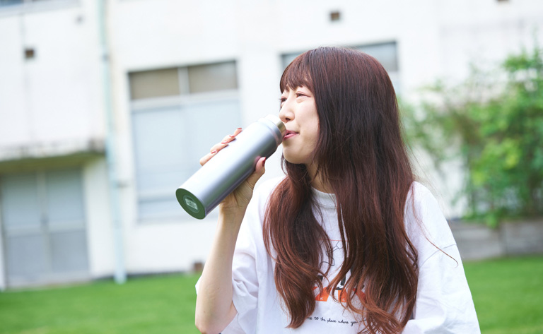 「やっぱり水分補給は一番に考えますね。なので、フェスには毎回水筒を持参します。そこまで大きいものではなく、500mlぐらいのコンパクトなものを使うことが多いです。フェスではとにかく動き回るので、できるだけ軽い水筒が良くって」