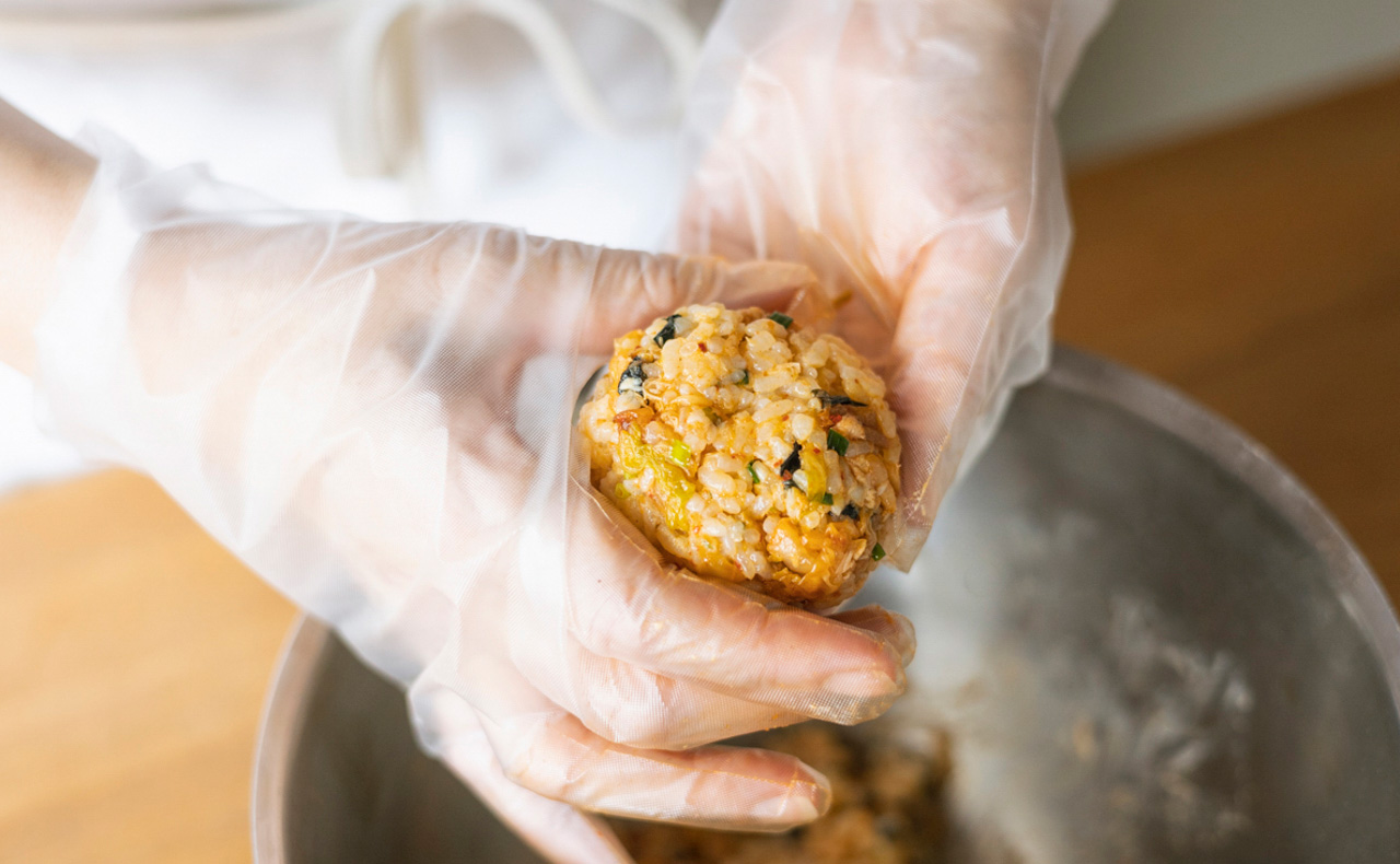 その点、この「おにぎりピカタ」は卵がつなぎ役をしてくれるので、その心配はご無用です。