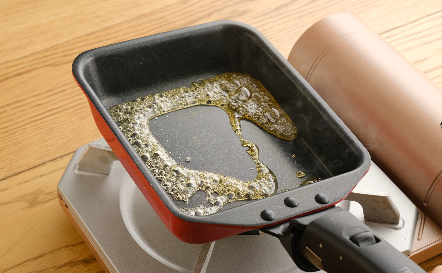 取っ手を外せばオーブンにも使える玉子焼きフライパン。今回のプリンはみんなで分けて食べるのはもちろん、ひとり占めして好きなだけ食べる……なんていう楽しみ方も叶いそうです!ぜひ作ってみてくださいね。