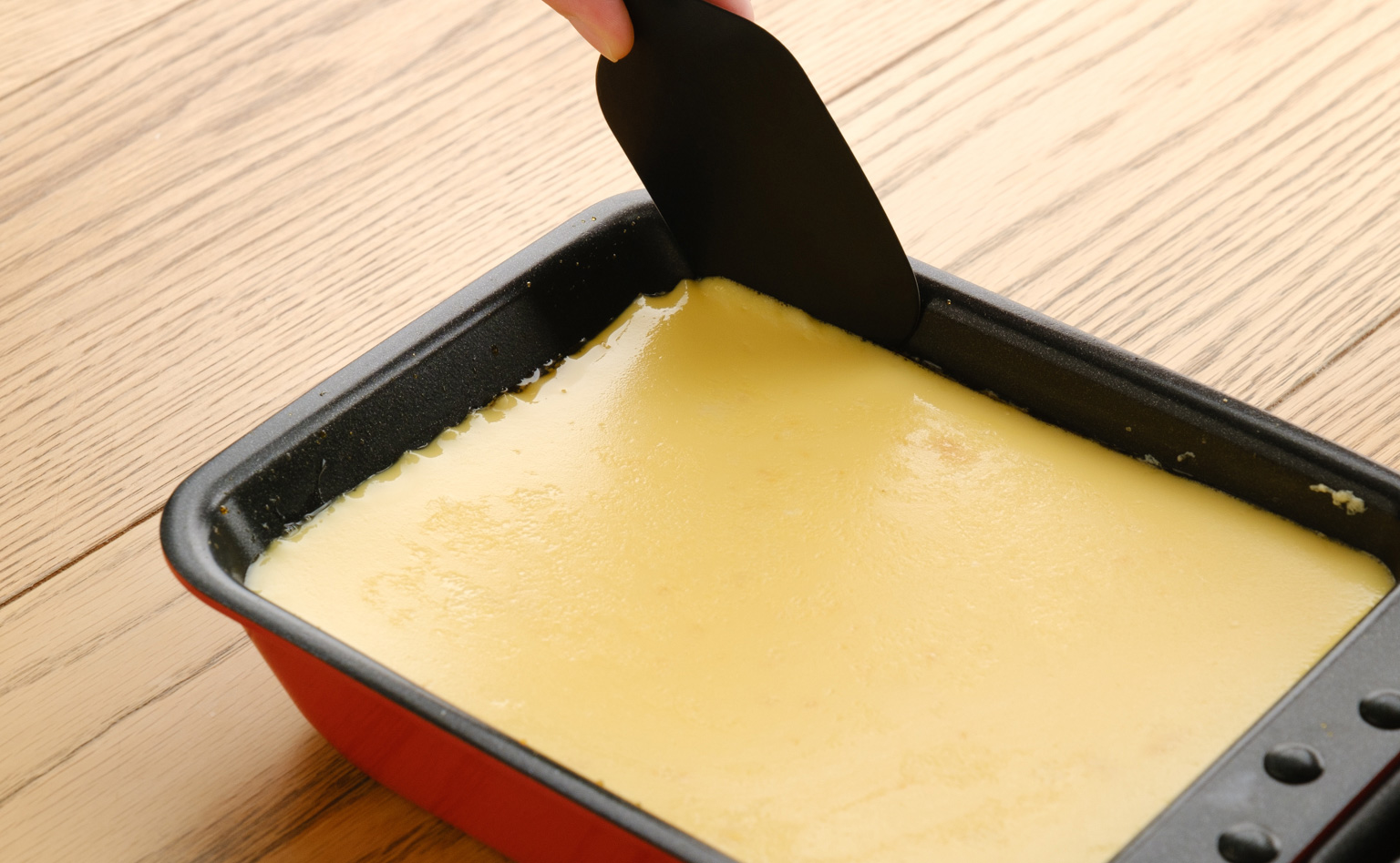 自宅でプリンの試作をしていたら、子どもが「これ全部食べていいの?」と目を輝かせたほど(笑)。大人にも子どもにも喜んでもらえるレシピです。今回使用したフライパンは長方形なのでオーブンにも入れやすいですし、冷やす間も冷蔵庫の場所を取らないのがいいですね。