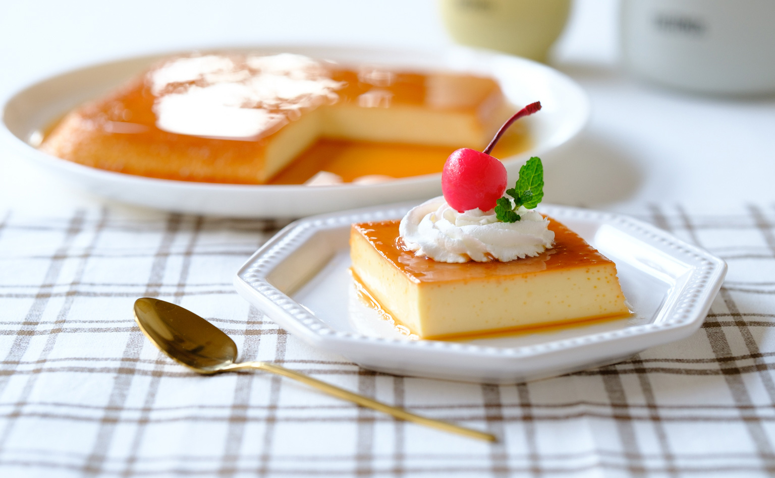ホイップクリームや缶詰のさくらんぼで盛り付けをするのもおすすめです。喫茶店のプリンの雰囲気を楽しめますよ。