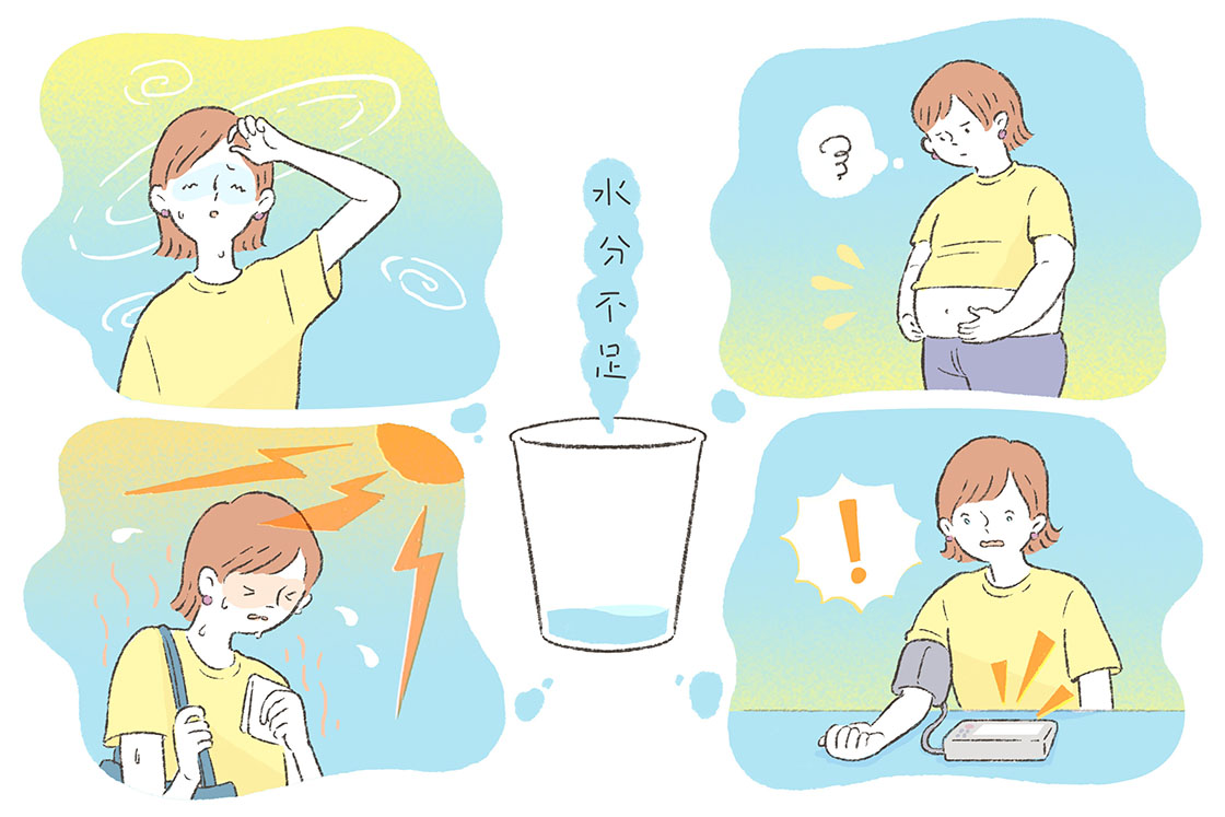 体液の量が減ると、血液の量も減るので、急に立ち上がることで血圧が低下する起立性低血圧が起きることも。それによって、立ちくらみや頭痛が発生する場合もあります」